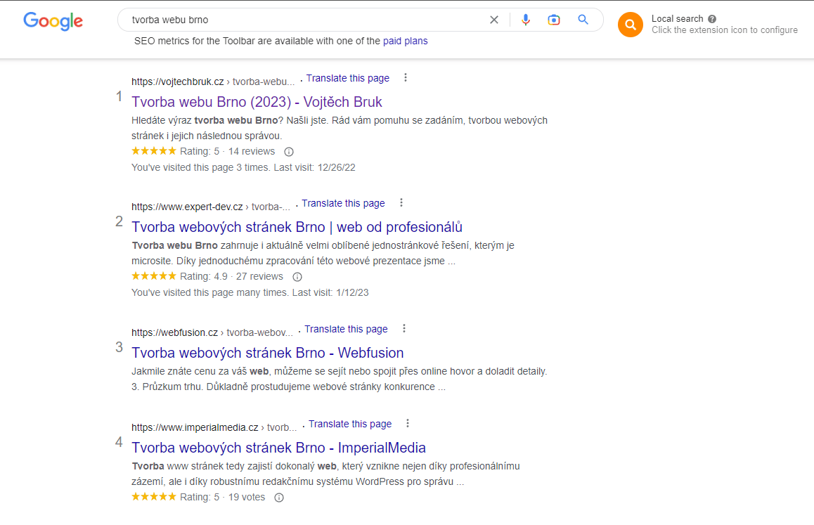 Dostal som svoju stránku na prvú pozíciu na výraz “Tvorba webových stránok Brno”,