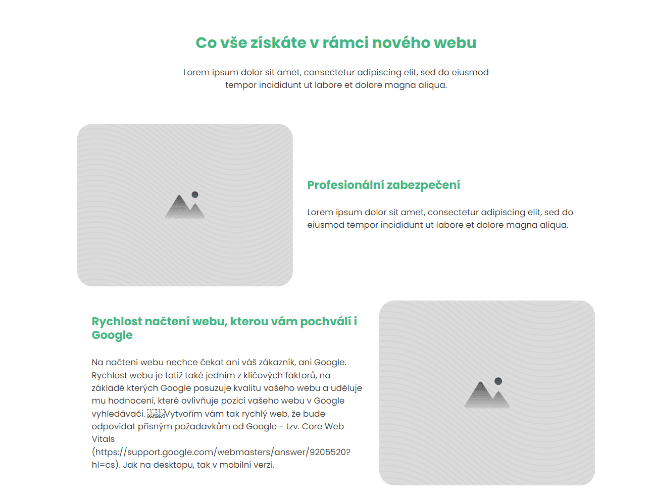 - Rýchle, responzivní a ľahko nájditeľné webové stránky,