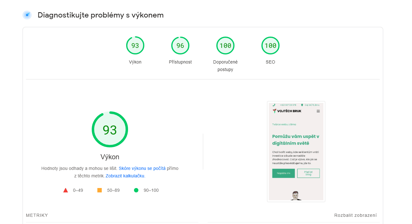 Ani váš zákazník, ani spoločnosť Google nechcú čakať na načítanie vašej webovej stránky. Rýchlosť stránky je tiež jedným z kľúčových faktorov, na základe ktorých Google posudzuje kvalitu vašej stránky a prideľuje jej poradie, ktoré ovplyvňuje pozíciu vašej stránky vo vyhľadávaní Google. Vytvorím vám takú rýchlu webovú lokalitu, ktorá bude spĺňať prísne požiadavky spoločnosti Google – tzv. Core Web Vitals. Na počítači aj v mobilnej verzii.